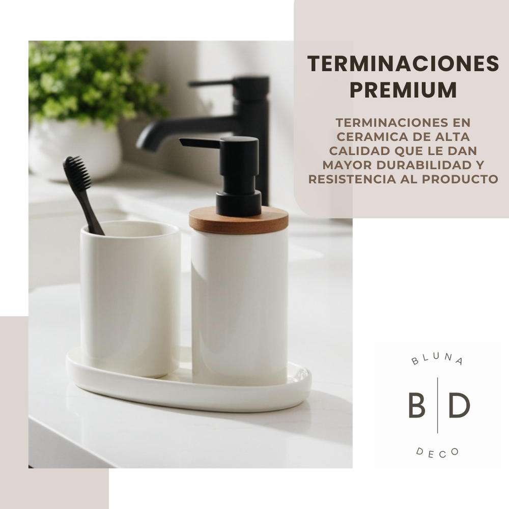 Cada pieza está cuidadosamente elaborada para ofrecerte comodidad y practicidad, ideal para organizar tus elementos de higiene personal con un toque de distinción.
