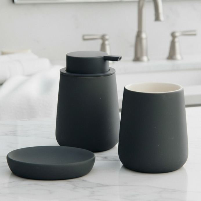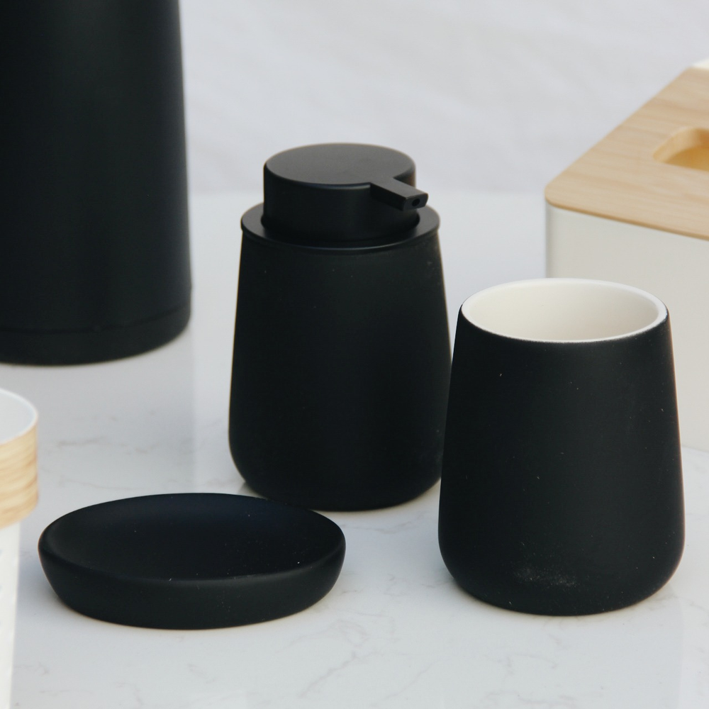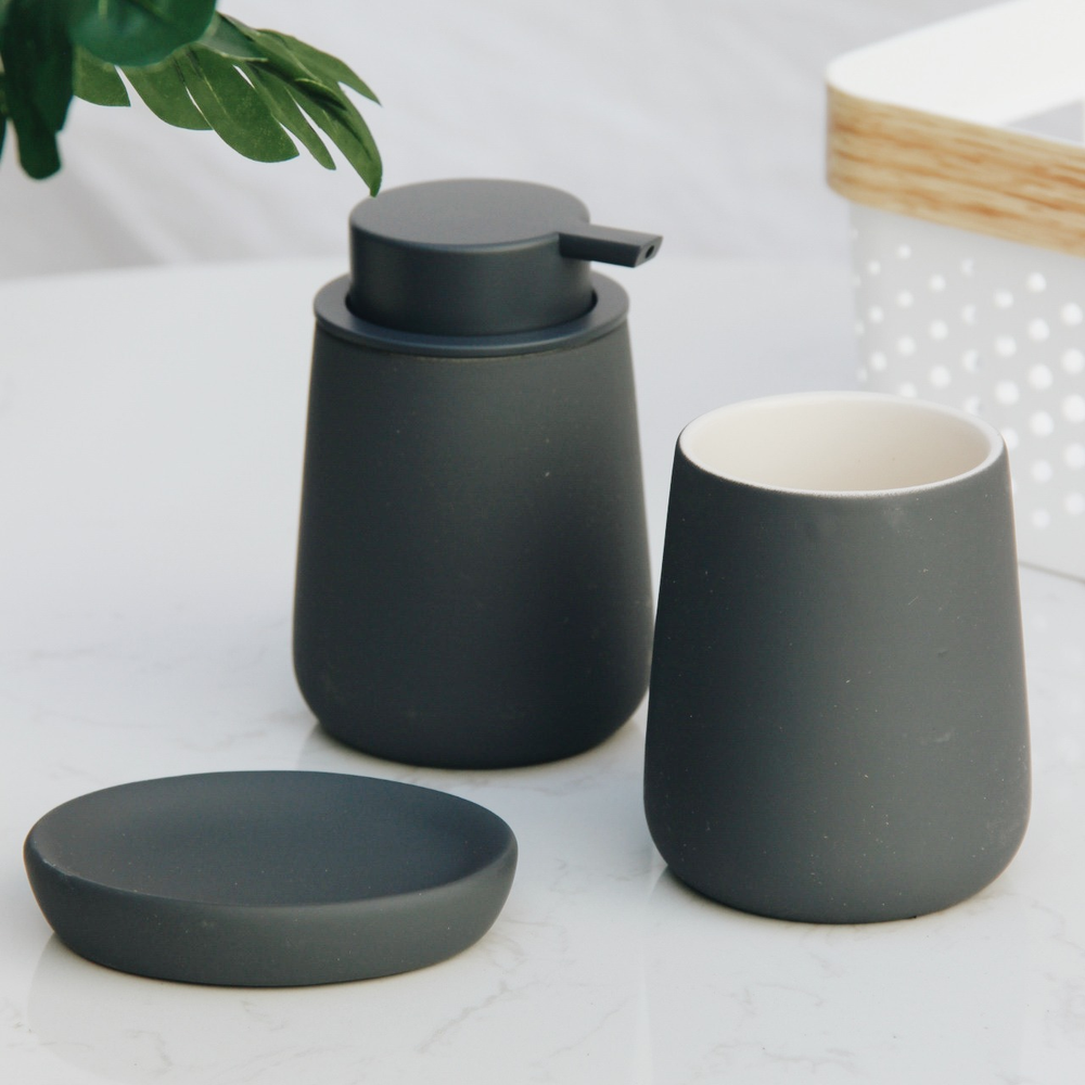 Renová tu baño con el Set de Baño Pisa, un conjunto de 3 piezas en cerámica de alta calidad con un acabado mate que aporta sofisticación y resistencia. Disponible en dos colores atemporales: negro y gris, ideales para combinar con cualquier estilo de decoración.