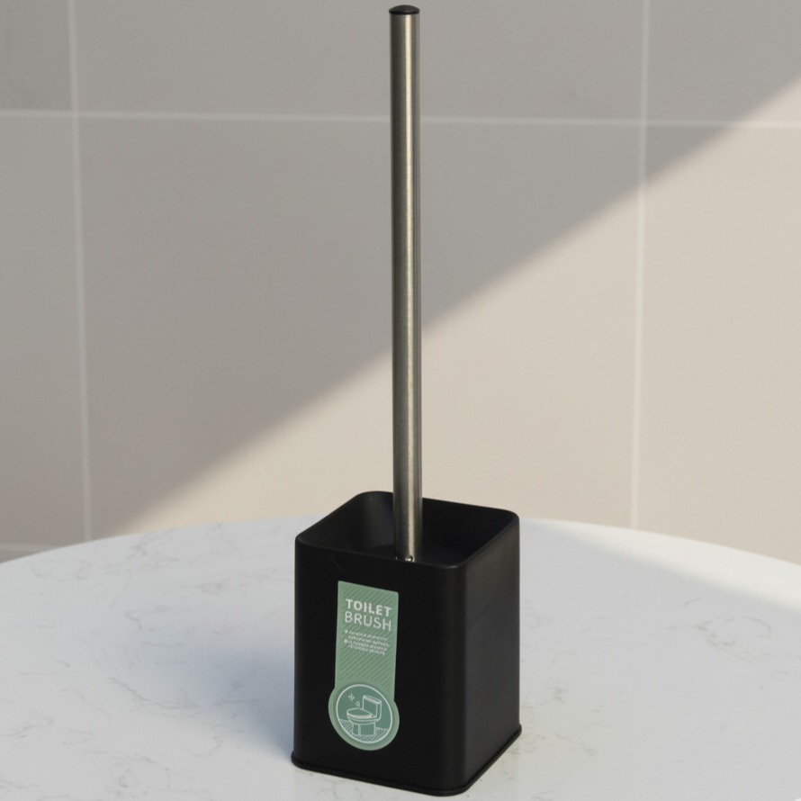 Con unas medidas de 40 cm de alto por 10 cm de lado, esta escobilla es perfecta para cualquier espacio, combinando diseño moderno y practicidad. Su acabado negro le aporta un toque sofisticado que armoniza con cualquier decoración.