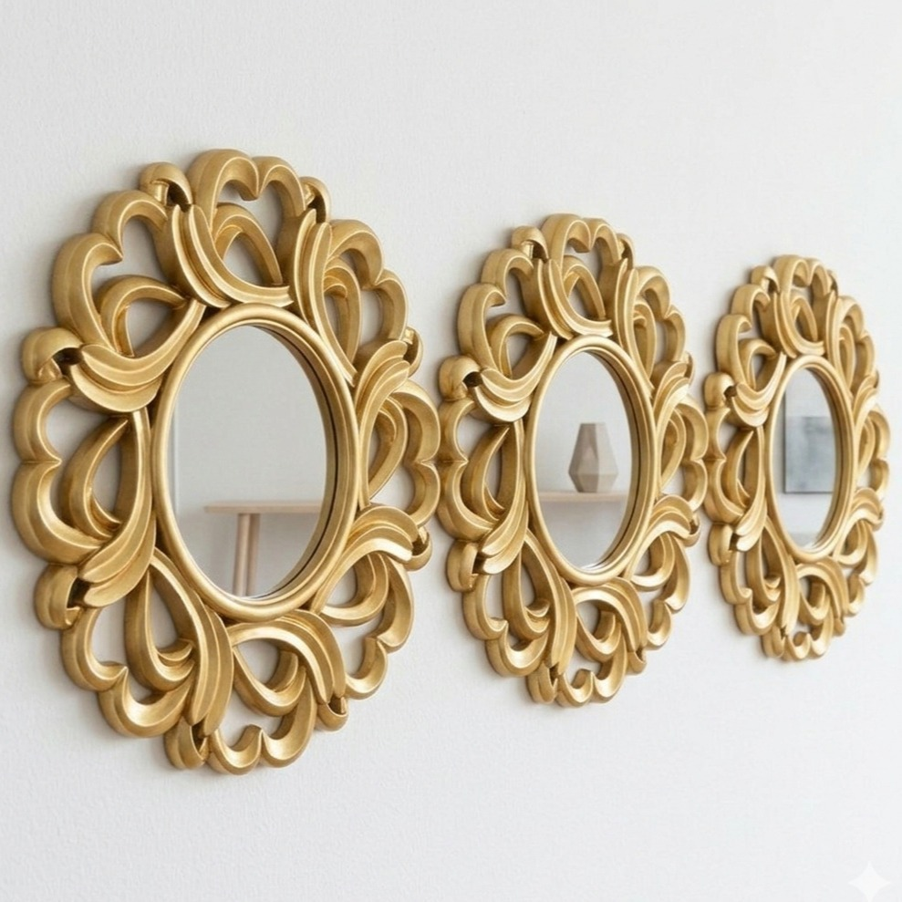 Este set no solo refleja imágenes, sino también estilo y buen gusto. Sumá un detalle que realza la decoración de tu hogar con los espejos Mark Gold, perfectos para crear ambientes luminosos y llenos de encanto. ¡Dale a tus paredes el protagonismo que merecen!